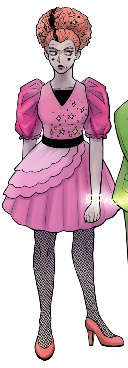 She supposed to debut in Season 2 and appear to Owen whenever he falls asleep as a guide. She always appears as if on a music video set/ movie set. Surreal dream-like scenery with whites and light pinks, set workers and dancers always around although little Owen never gets a glimpse of their faces, and she talks to Owen as if between shoots. She comes across like a sassy pop-diva aunt encouraging him to be more confident and mentors him to use his powers but there's is a mysterious/ sus-ness about her. She's not a villain in series, but only helps as she sees the antagonist as a common enemy and is unable to cross into our world. (hinted that she was a villainess in an ancient time and Owen is actually visiting her in her astral prison).