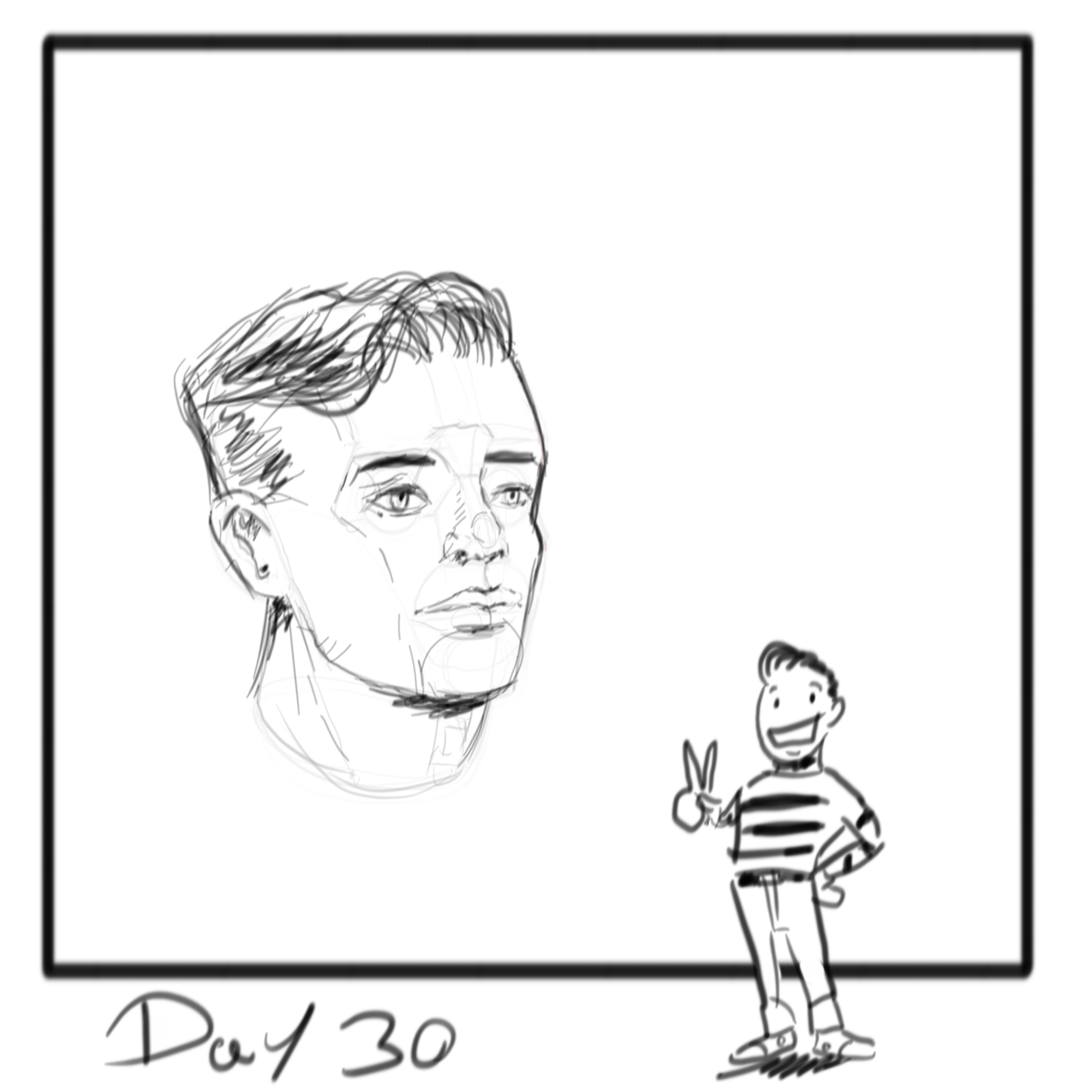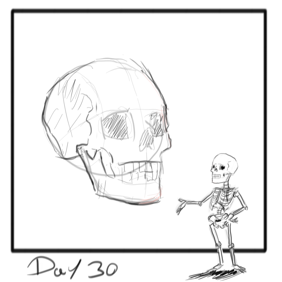 2x day 30 with very limited time because I´m going on vacation today.I´m glad I made it through the challenge. I didn´t do the skull properlyand I just made up the portrait without a reference. This was fun,I´m glad I did it, but I have to say that the other lessons by MB are better and the 30 day thing could be structured better imo. I can imaginesome people being very frustrated by it