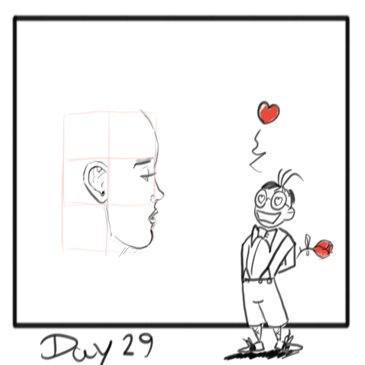 2x day 29oh no, it´s hands again and my least favourite hand pose are fists. The same thing again for the head drawing, I would never draw a head with that technique andI also don´t recommend it, but I pulled it through.