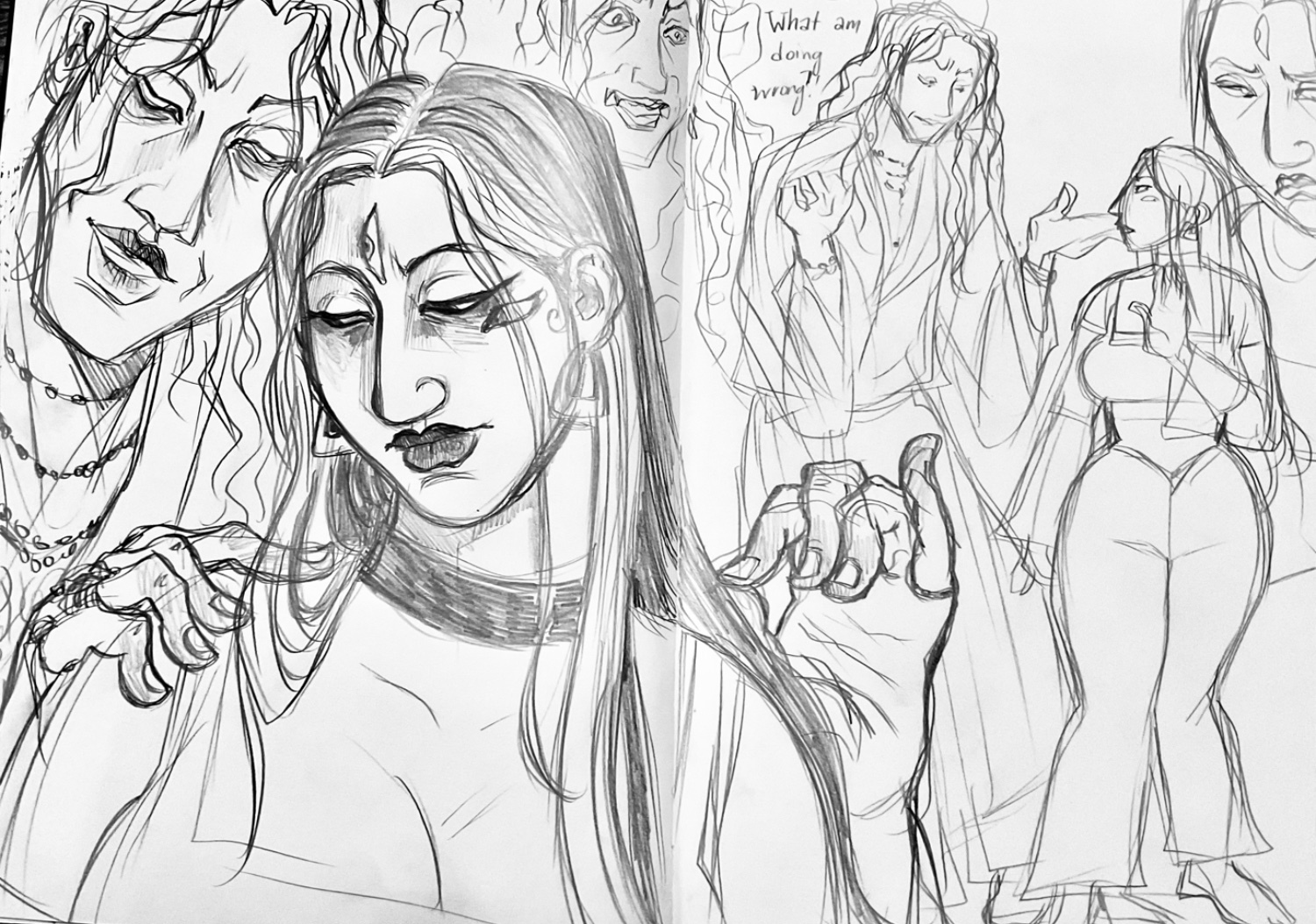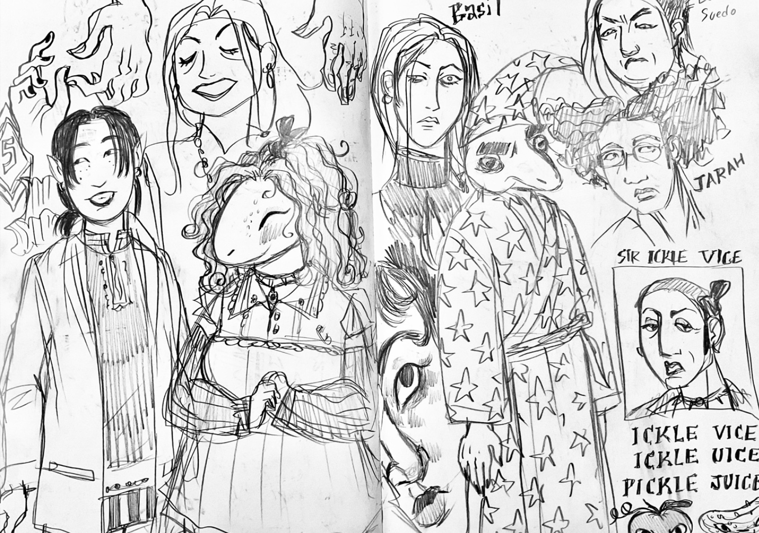 Drawing my lizard girl character again! And her older sister too. I really like their goofy designs