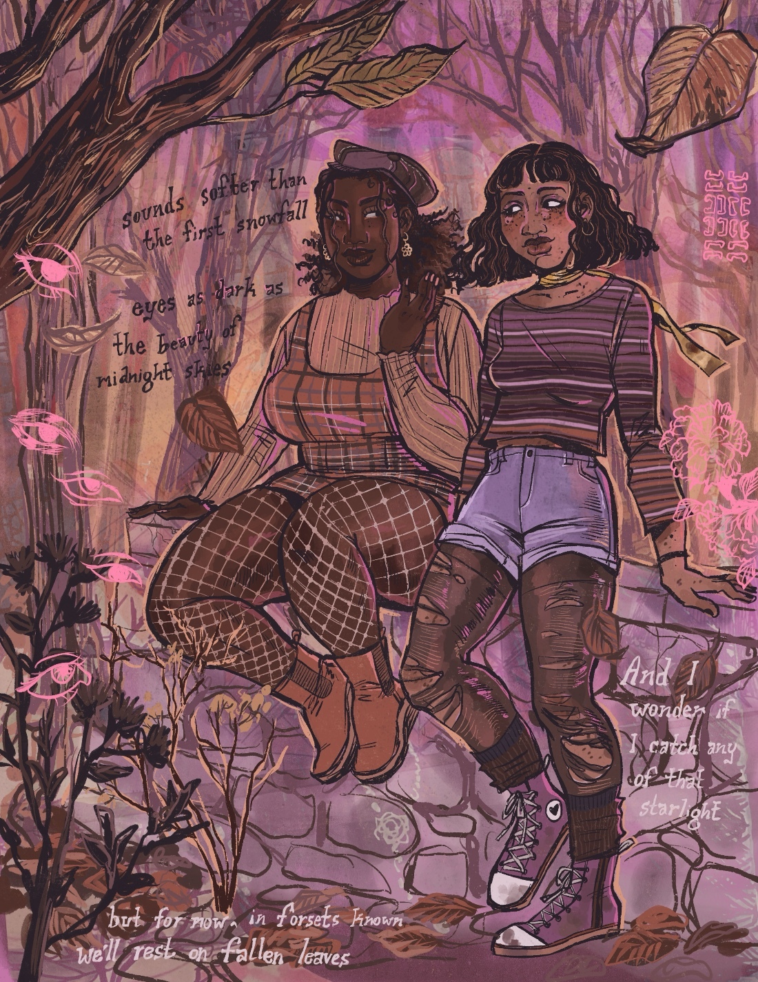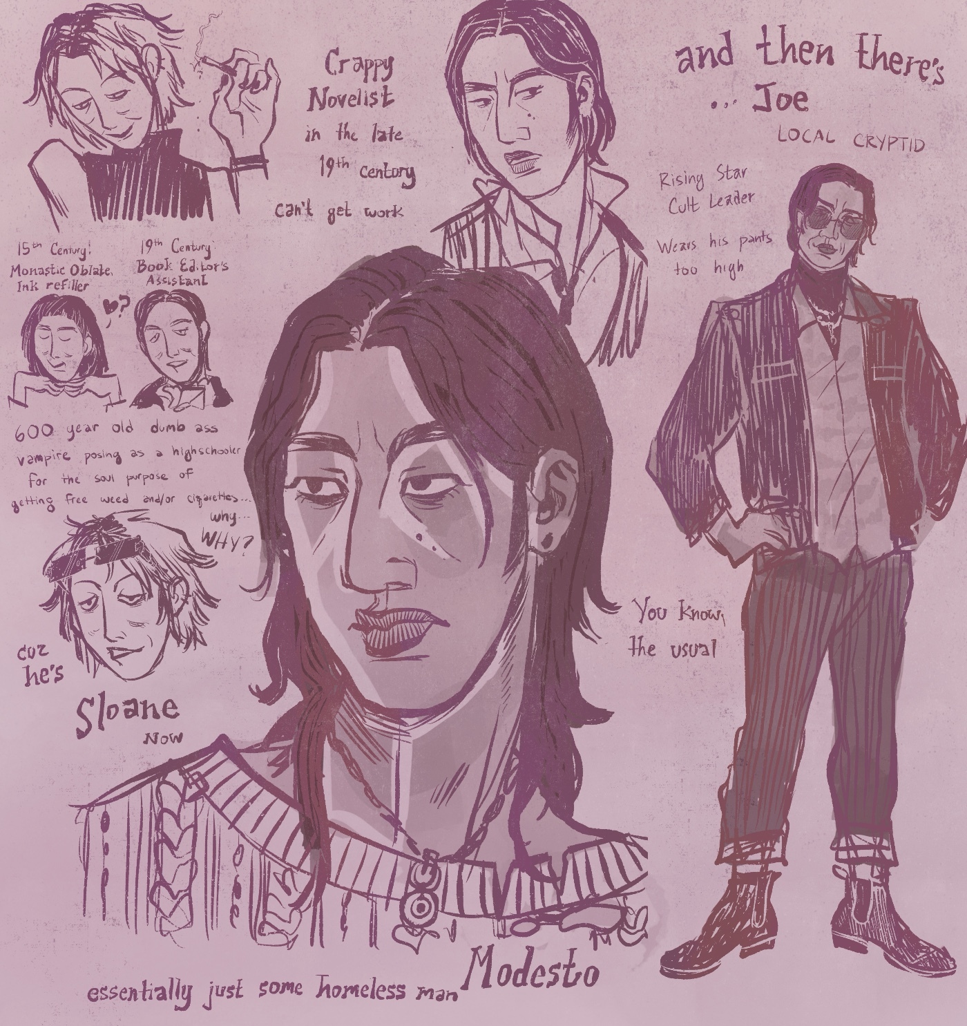 Hereās some art though Iāve been working on! A finished illustration just in time before fall changes to winter lol and then some sketches of the three resident vampires for one particular story⦠when I started to realize I was a vampire novelist