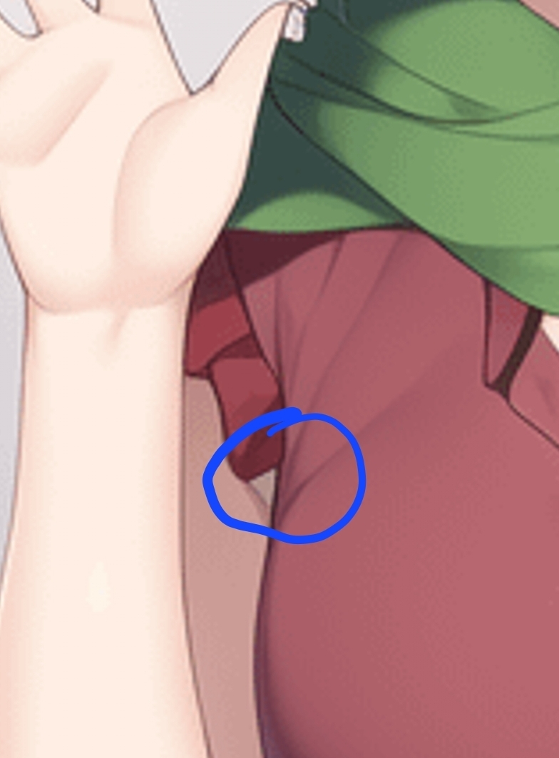 The lighting on this particular part of the drawing just doesn't belong on the image. Part of the shirt also blends with the color of the skin.