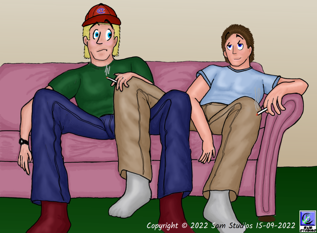 I’m the blond in the baseball cap. He’s the brown haired kid. We had just finished wrestling over a cigarette (it was the 80’s, everybody smoked) and when we finished he draped his leg over mine.