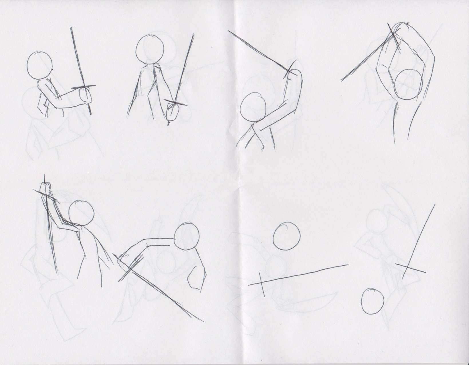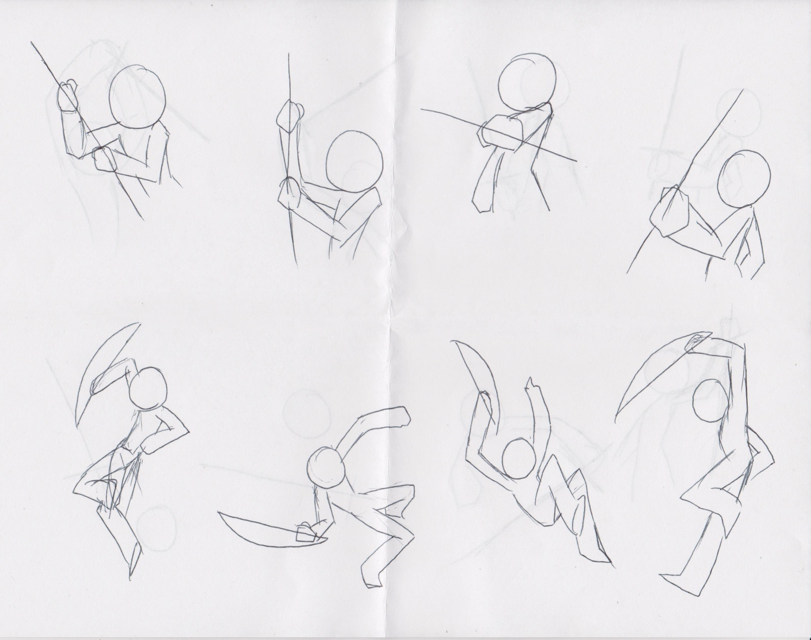 Anyway, you can see that the drawings are very simple and the poses are all different; some from different angles, some with foreshortening and some without. The point is to push yourself to be creative and trust in your skills to make each idea work.