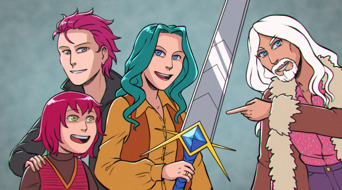 I also had to make a timeline generally, for things like, "When did Rekki's grandmother end the Fourth Age?" (answer: When Rekki's mum, Juniper, was about five), and that informs things like on this photo, everyone's kind of 1970s-ish, and Sylvia is about 25 years old, in contrast to being an older lady in the "present".