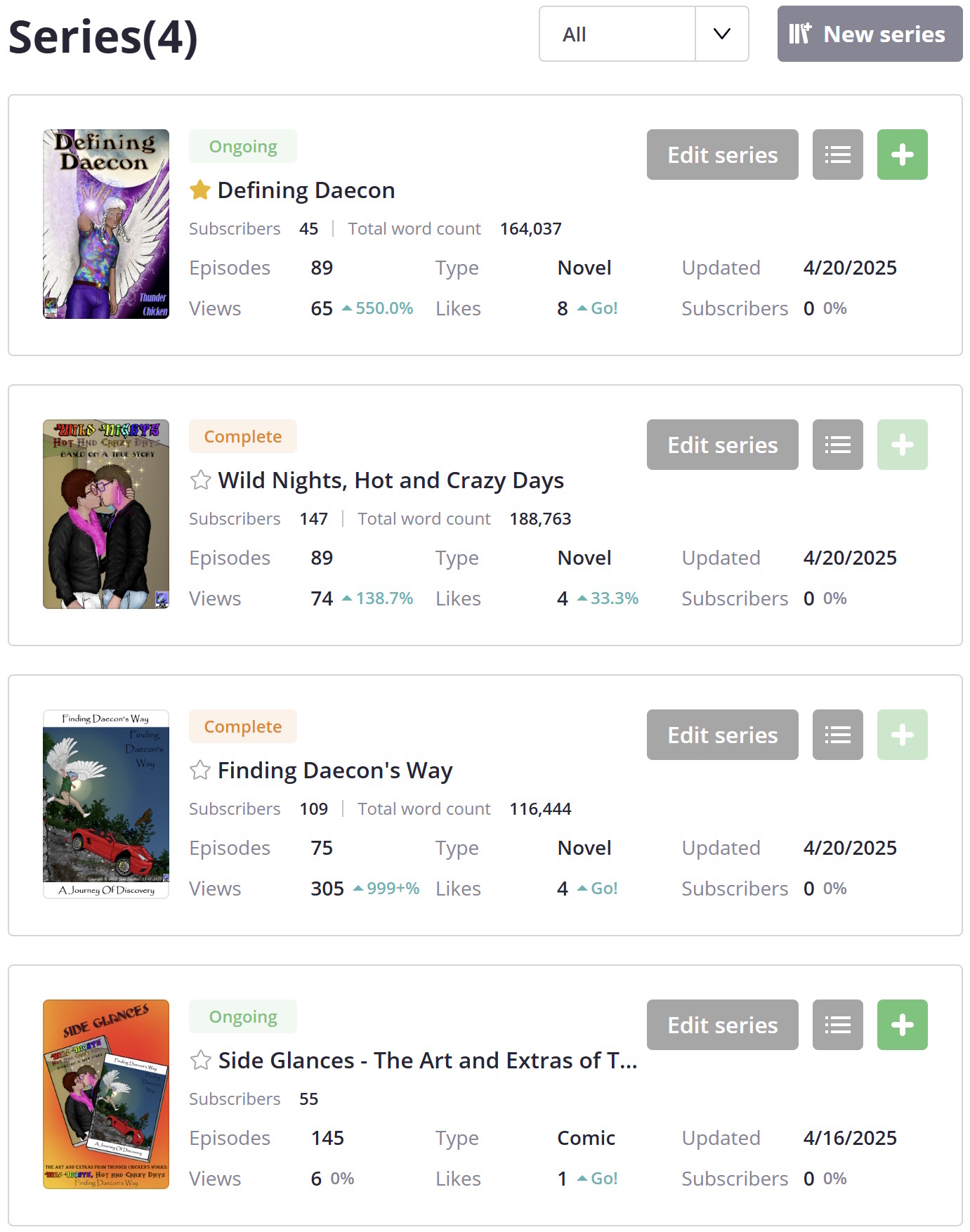 I just looked at my dashboard and noticed a HUGE increase in the number of views for my series. I find this odd, especially for a Sunday which is traditionally my slowest day of the week. No great influx of likes, comments, or subs, just lots and lots of views. A very active Sunday for me MIGHT see 35-50 views on any given series, usually when a new sub is added and they check it out.