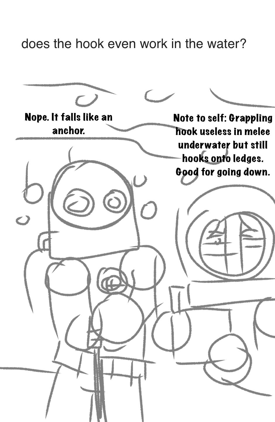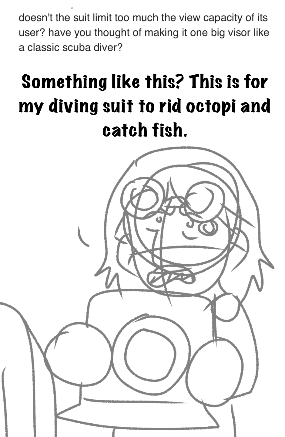 it could probably go better if you add those little fans on different parts of the suit to be able to work underwater, it looks heavy and it could help to fix any part of the submarine.