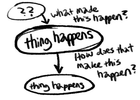 A thing that I try to think about when making an outline is cause and effect. So like, instead of seeing it as a list of events that I want to be plot-related, I try to think of how one point might have caused the next point, or going the other way, what might cause this point to happen.