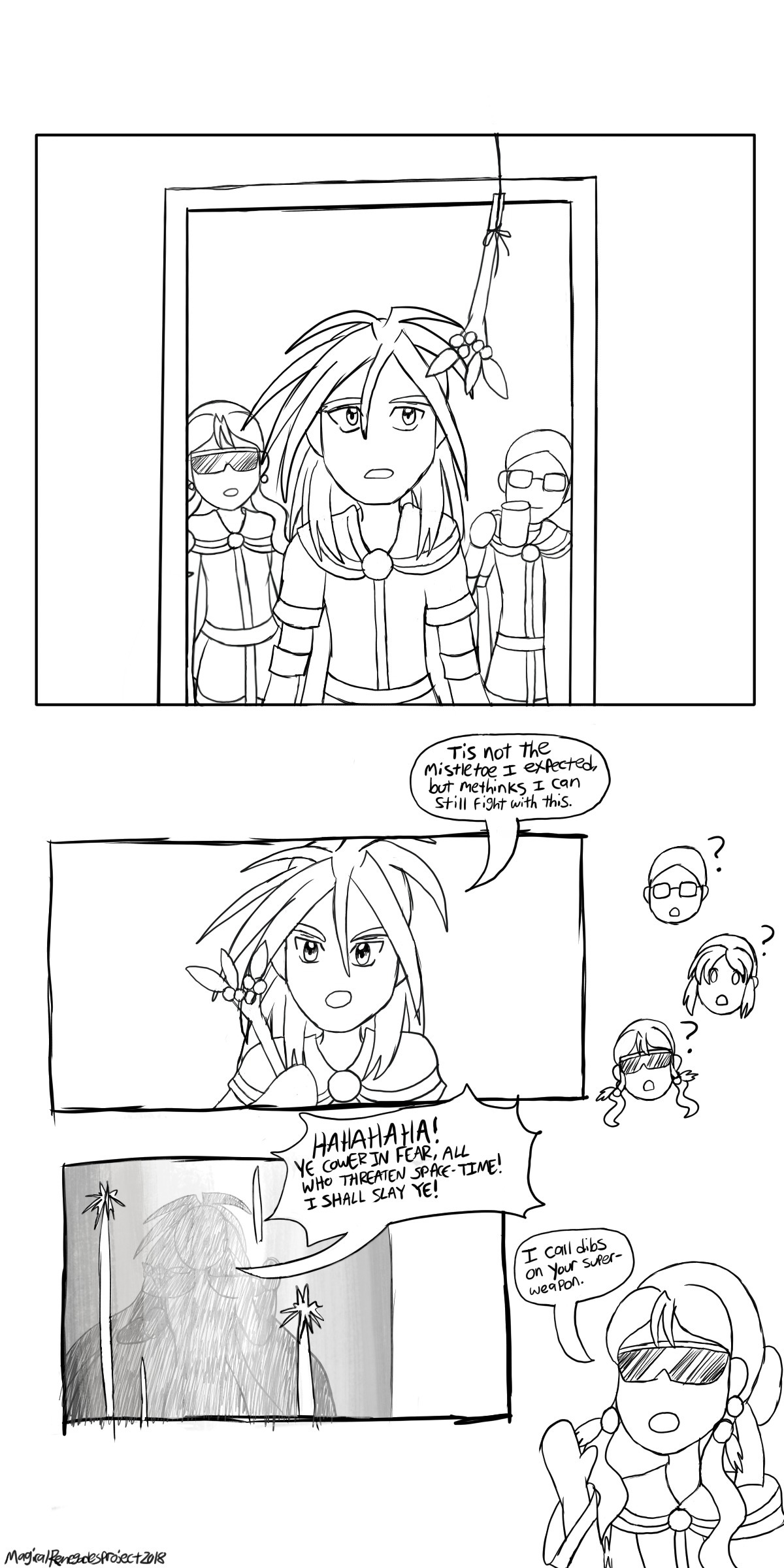 Day 1 (ugly sweater) and day 9 (carolers) combined again but with another character.
