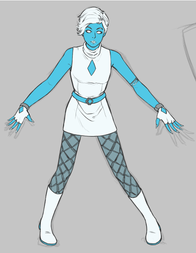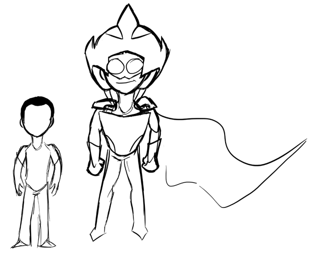 Crystal: Quincy’s “Spock-like” sidekick. Sister is the most popular female hero in the universe. Trying to compete with her to prove superiority. Can crystalize one organic object at a time. This forces her to communicate with Quincy. Previous co-writer drew the concept since she’s her favorite character (she decided to work on a webcomic we worked came-up together instead).