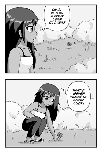 My black and white (old example, but still relevant) has no blocked out grays or anything, just a lot of penwork. Nothing too complex, usually basic hatching but I do go a little ham every so often.