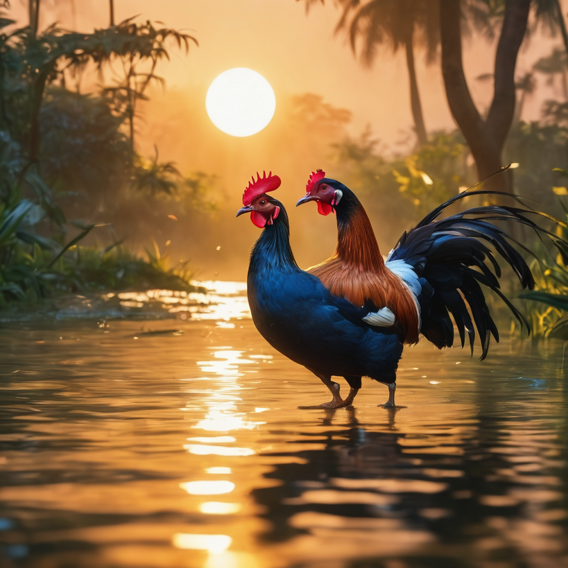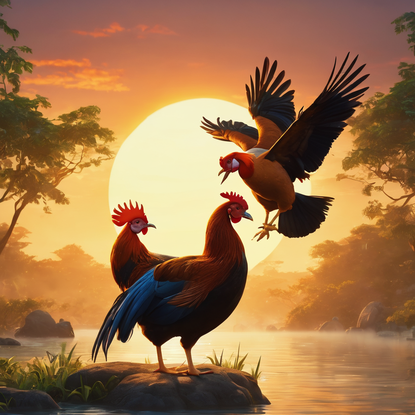 "Cockerel fighting chinese duck" (these are the backgrounds I want to break down, draw and try to render in my own style.)