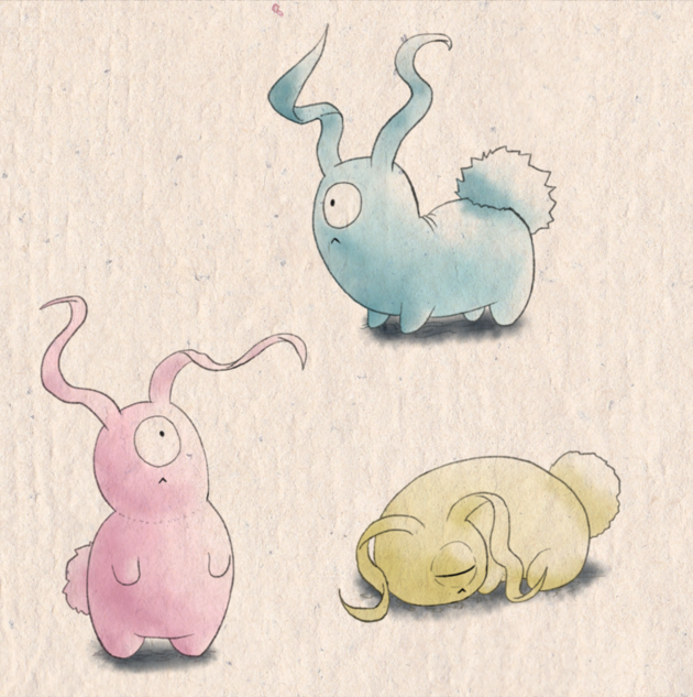 onibonis, a species of rabbit like creatures from the endless forest. Because they have one eye they lack depth perception and they stumble on their ribbon like ears most of the time. Luckily, their squishy bodies save them from broken bones...also they are known for having no brain...all their stats were used on cuteness and adorableness.
