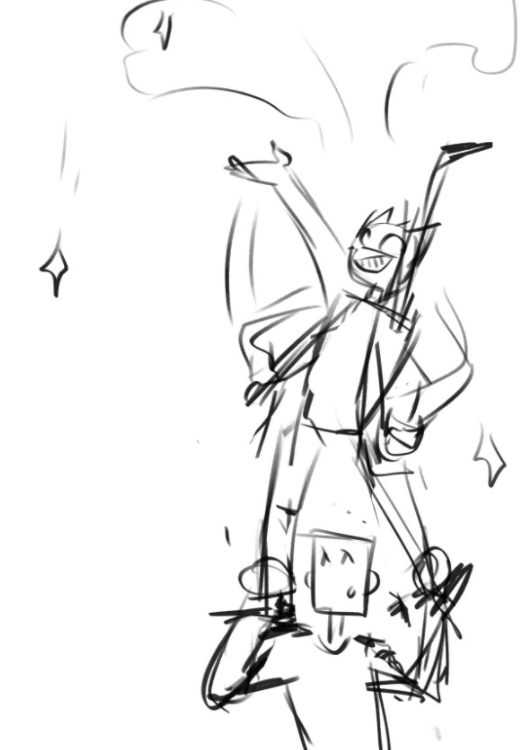 I was pretty happy with this, so I only did some adjustments in the cleaner sketch to make things like clothes and stuff more dynamic.