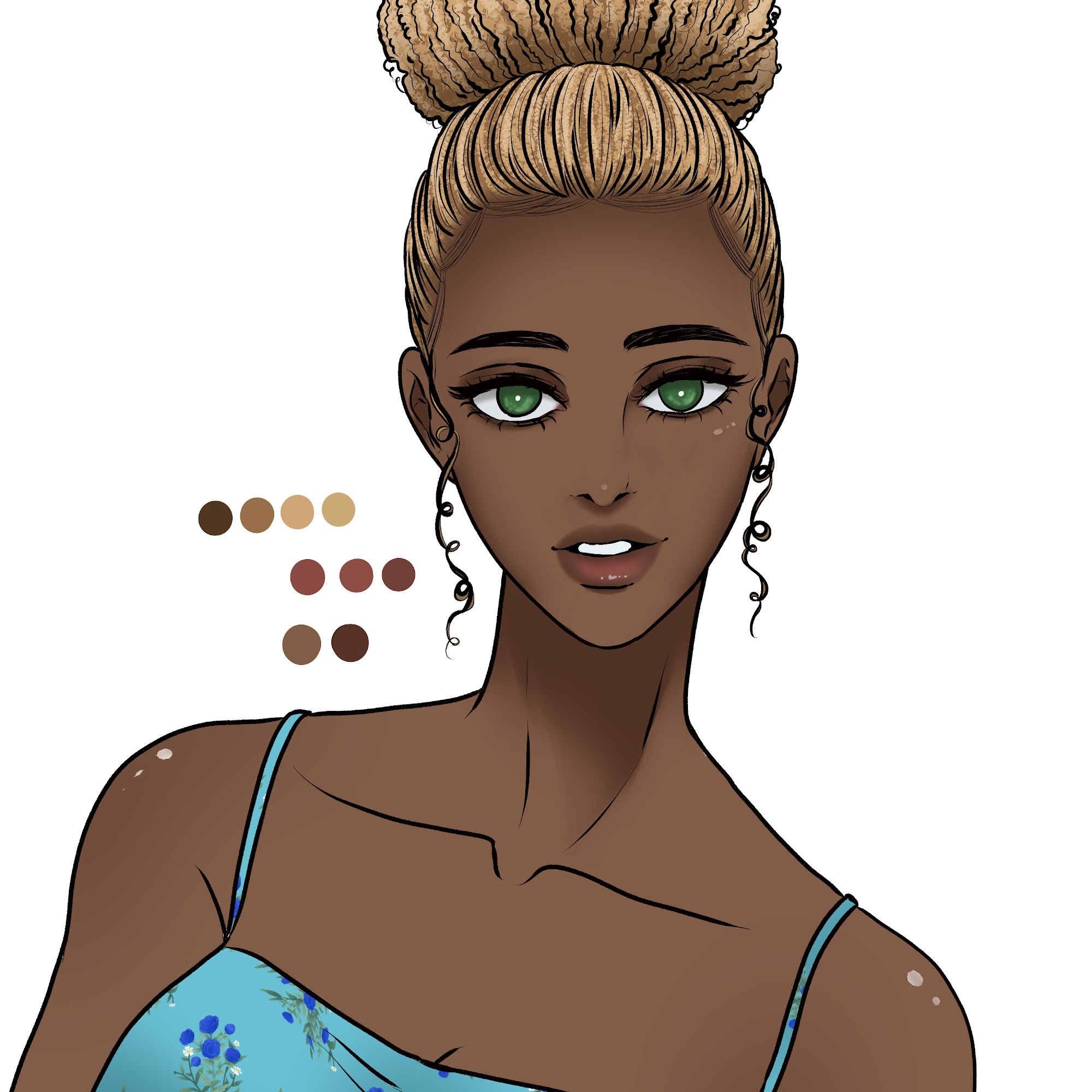 I like how beautiful and different all of these characters look from each other. Between a female lead with dark skin, but blonde hair and green eyes, and the MCs little sister with all of her tattoos. I love being able to portray the diversity of the sort of princesses that exist in this world, and also just enjoy their.