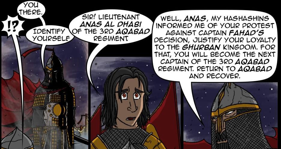 ANAS, for being loyal to his general opposing FAHAD's actions is given a position of captain-commander: