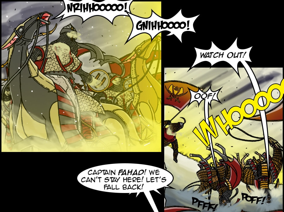 FAHAD himself, ANAS, and his guards survived and retreated back to where general NIZAR is stationed: