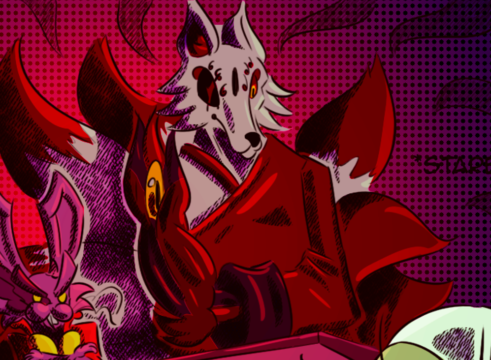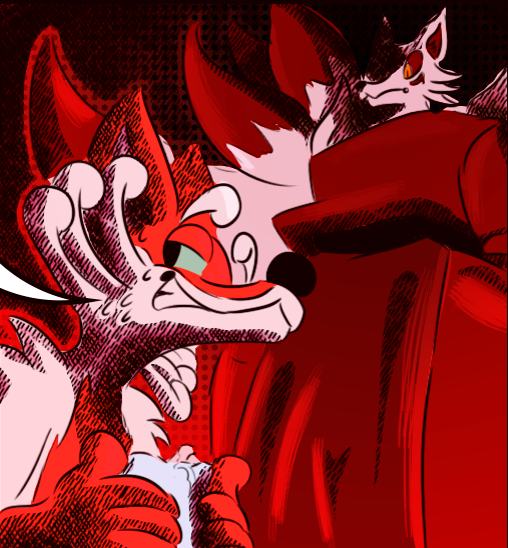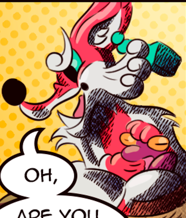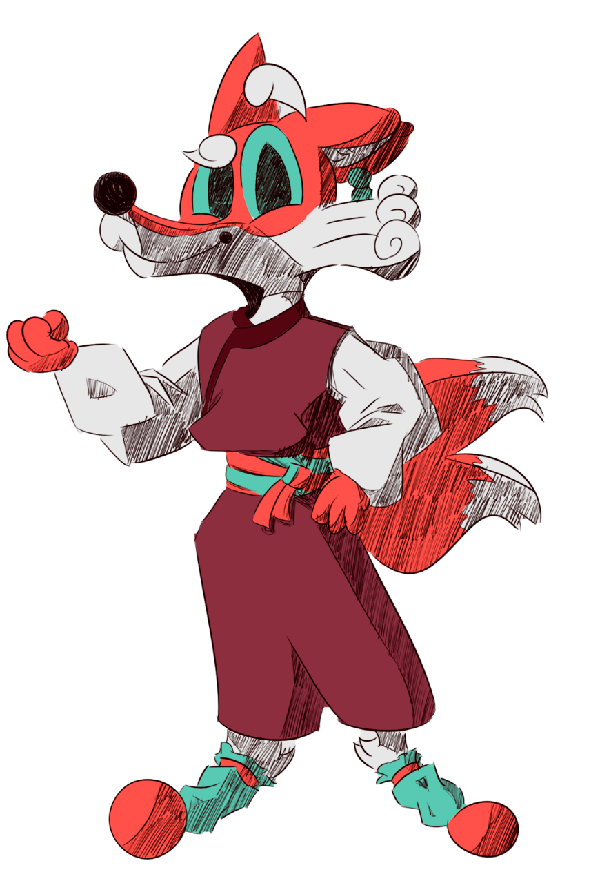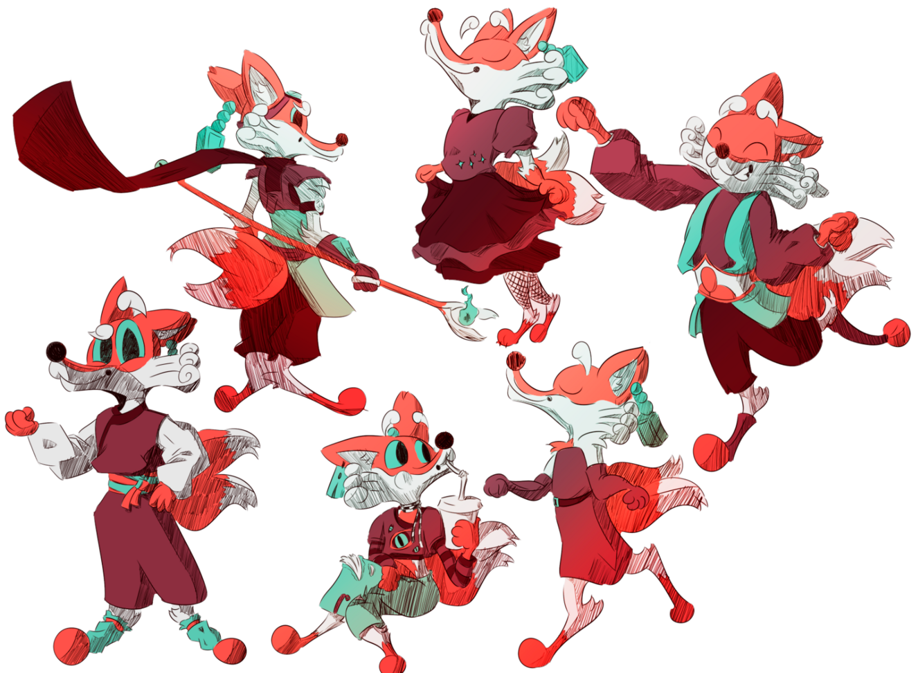 now, as you might have notice, she repeats the same palette, I do that with a bunch of characters, including Henry and Larry, but inher case is because she makes her clothes for her bipedal form from her own fur and blood, which makes all the clothes either red, white, orange or blue.
