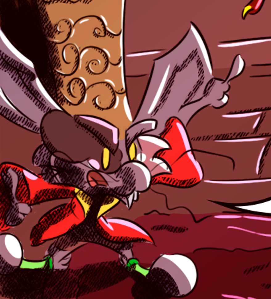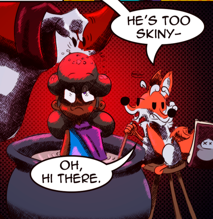 Larry works in a similar but opposite way, him constantly wearing a cape to his side helps to develope the idea that he needs shielding, like a blanket, he also uses a colorful outfit but it works on the other side of the spectrum, while Henry's red and yellow works as happy and angry, Larry purple and blue indicates that he leans more into sadness and fear, which you see a lot and fits his childish, speaking of, besides his cape, Larry's cloths design is simple, which also fits his character as a simple kid with a simple objective who sees the world in black and white, while he learns through his adventure next to his "gray" friend, how complicated it all is.