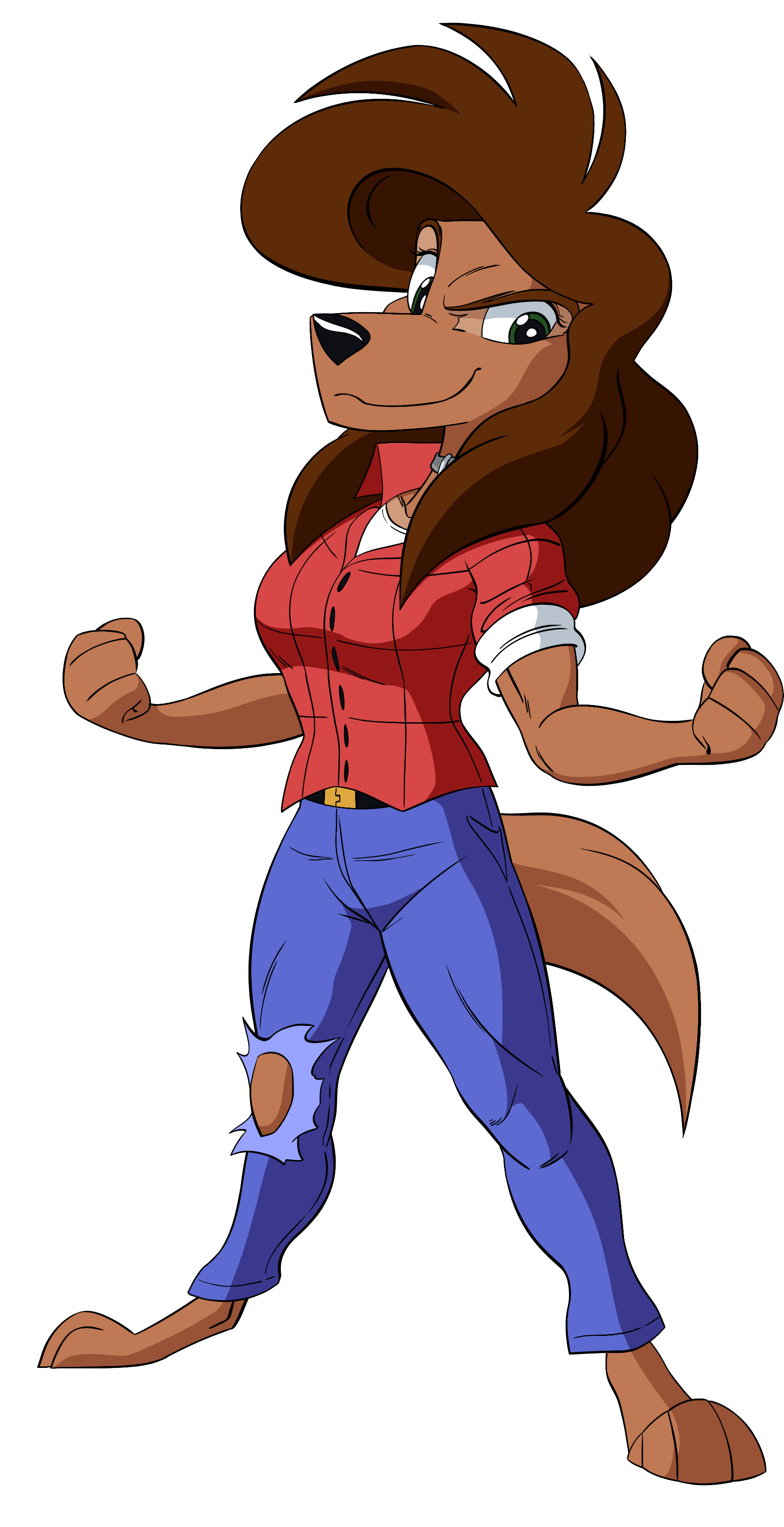 Her older sister Vicky shares the same warm color pallete but amped up to the extreme with much more vibrant brown sugar fur tone, wild unkept hair, a red plad shirt and tattered up jeans. Her outfit funny enough is a recent addition because initally, she was going to wear a jean jacket shirt but just didnt work for her so I went with the plad shirt with rolled up sleeves so that more of her muscles would be showing