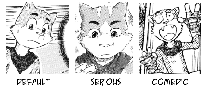 I don't chibi-fied my characters as they're already cartoonish enough. However i simplify their outlines and exaggerate the face when there's a moment to do comedic poses. I use it sparsely and only in small panels.