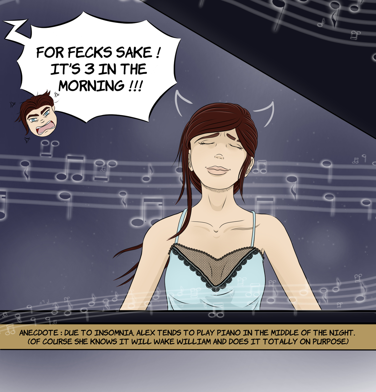 1A/Alphonse/Ginger's uncle: He took interest in piano during his teen years (I really want to make an extra mini comic about this so I'll keep that story for myself for now), was taught how to play it and enjoyed it but can't do so now because he lacks time to invest in any hobbies atm. He's got lots of job to do