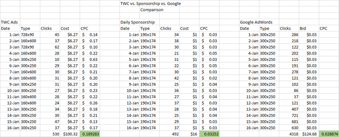 As to getting advertising on the TWC site, I've never gotten ads there myself, but I've heard a lot of good things, so it's absolutely on the to-do list for me when I have the cash for it. This article has some solid numbers if you're interested!