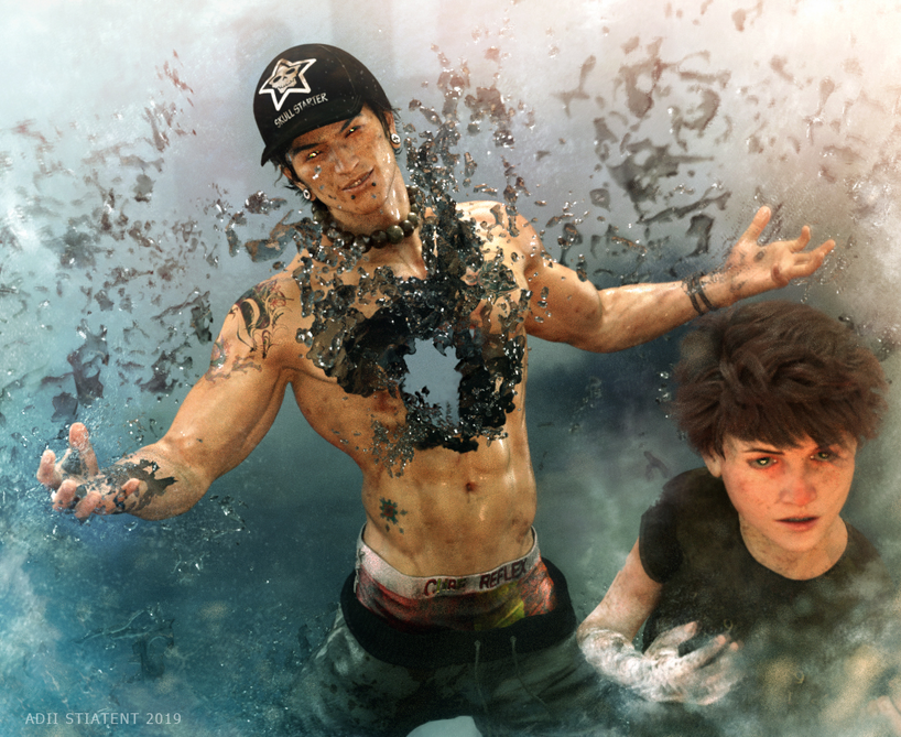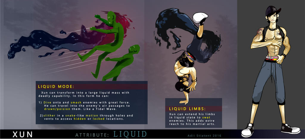 comcept art: (he can smash and strike his opponents with his liquid limbs, extends sort of like Mr. Fantastic and Dalsim (SF) but just more watery and snake-like)