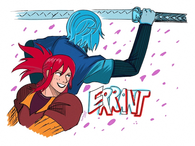 Basically what you're probably thinking of, like a character from Errant hanging out with a character from Rise of the Heroes, is totally cool, and I'm only being fussy over rules in case somebody sees me saying "crossovers are okay" and sends in like.... Rekki with a copyright character they don't have the rights to and I don't have permission to put in my comic that I monetise (Like yes, I would love to see Rekki hanging out with fellow spikey haired fashion disaster worst girl, Catra from She-Ra, but let's keep that to social media, I can't display that on the comic itself