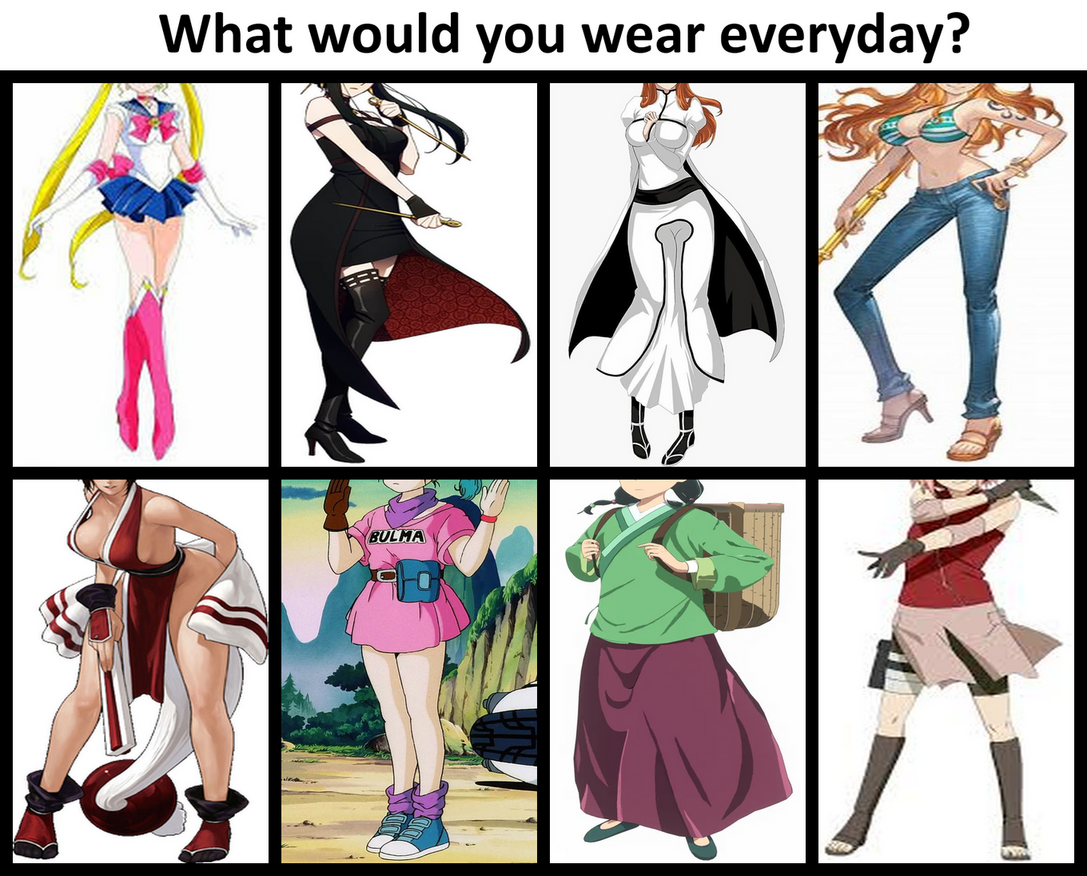 Bulma's and MaoMao's. They're the only comfortable outfits. Everything else is either for showing off or battling.