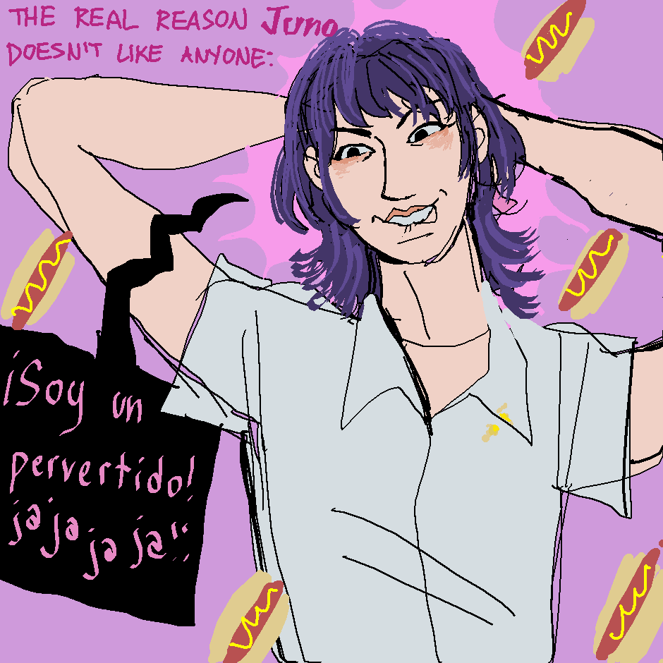 So don’t hate me, but I thought he was asking if they wanted to eat hot dogs?? lmao I’m not really familiar with word panchos, as a food, but maybe it’s an innuendo idk jdkdkdk But uhhh yeah that’s why there’s mustard on the collar of his shirt jdkdksks Also I get you I also love my most abysmal characters for some reason too, they just have TOO much personality sometimes… Anyways, you’ve been warned, view with caution