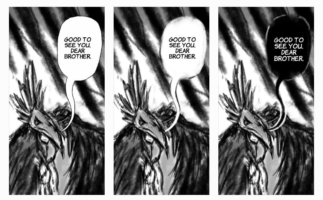 As the lettering stage looms for the first lot of my pages of my webcomic, Bird of Redwater, I've found myself a little stuck trying to decide what sort of speech bubbles to use!