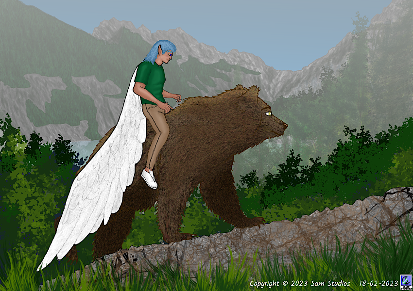 āDaecon to Owen the shapeshifter, who has taken bear form and is carrying Daecon on his back up a mountainside