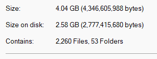 Everything basically adds up to 15.64 GB. I suspect that by the time I finish my story the files should be around 100 GB on the low end and 150 GB as the highest. It'll be one big and phat folder.