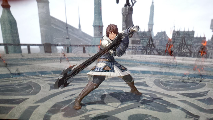 After the prologue we've only seen her on covers and artwork, but she has a fancy looking katana the saya (sheath) in particular is more ornate than most. I can't talk much about this weapon without spoilers, but katana in general are good for drawing attacks but poor for parrying. There are a lot of myths about katana, for example that they're lighter than western swords (they're not) that gives them an almost magical status.