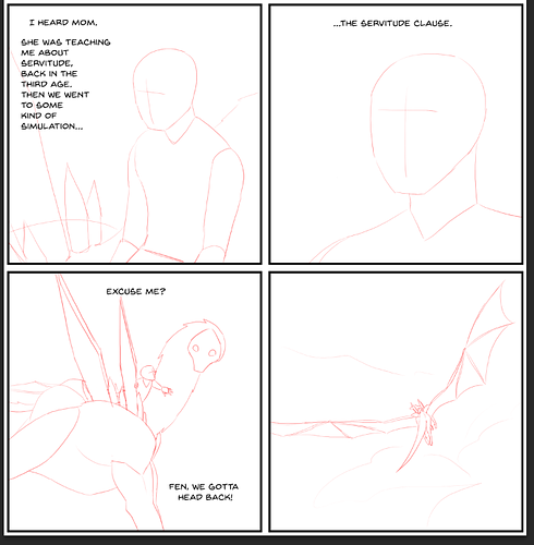I start with sketching out very basic figures, along with the dialogue lines already pasted into the canvas: