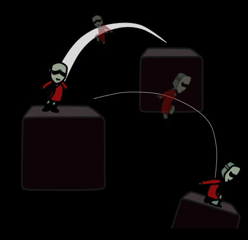 So, what I'm trying to do, basically, is show a character jump from the first cube, down to the third cube (hopefully) in just this one panel. Anyone know the best way to do that?
