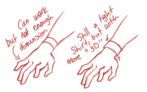 1. Unless someone is wearing a skintight suit, and even then a skintight suit will have wrinkles, clothing will lay on top of a person. Meaning sleeves will look like this second hand