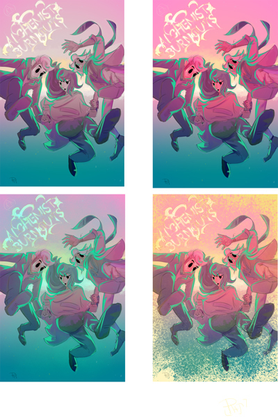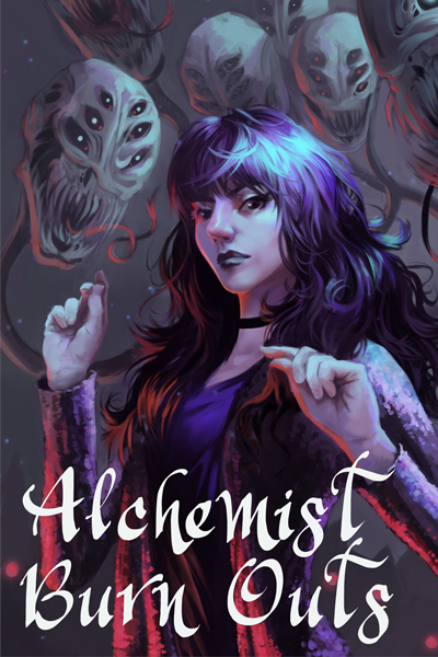 So for me I went through a couple different drafts for the cover of my story Alchemist Burn Outs, really weighing colors and how much they popped.