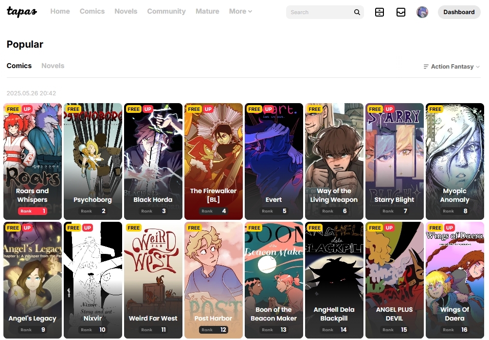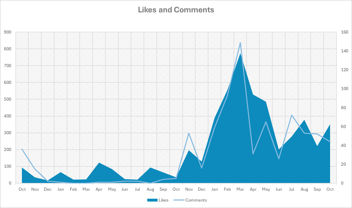 This time last year, I had 41k views, ~132 subscribers, 697 likes, and 69 comments. I'd made $0.20 via Tapas as well.