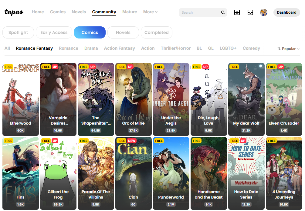 I have since changed my genre from Romance Fantasy to Fantasy, since about the time this screenshot was taken, we had a staff picks for Romance Fantasy and Etherwood wasn't on it. Clean, slow-burn fantasy adventure (hetero) romances aren't what they're looking for in that genre, I guess. I have yet to do as well in the Fantasy genre, though, as there is more competition and less visibility there.