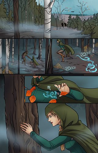 IMPORTANT: no matter how you choose to depict it, there is an easy test to see if you succeeded: show it to someone who doesn't know what's happening, and have them describe it. Don't ask them "what's happening here", that's too leading, just say "describe this scene for me, so I can see what you are seeing." If they then say the the people are covering their tracks in the woods, you nailed it.