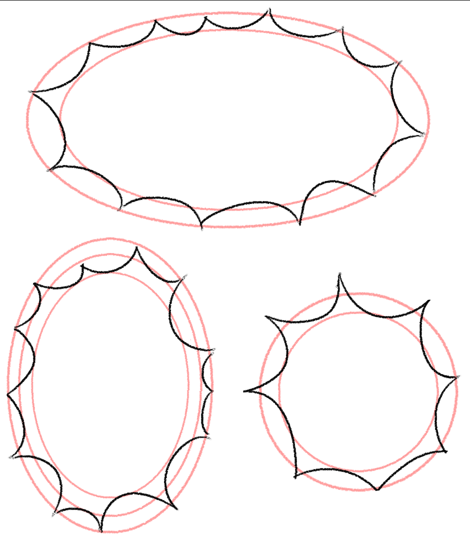 big things to remember is not to bother too much with making it look perfect, so long as the points clear it should be good. also the varied rings can help determine variations in the curves and spiky bits to kind of give it a more "wild" or excited feel depending on the balloon.