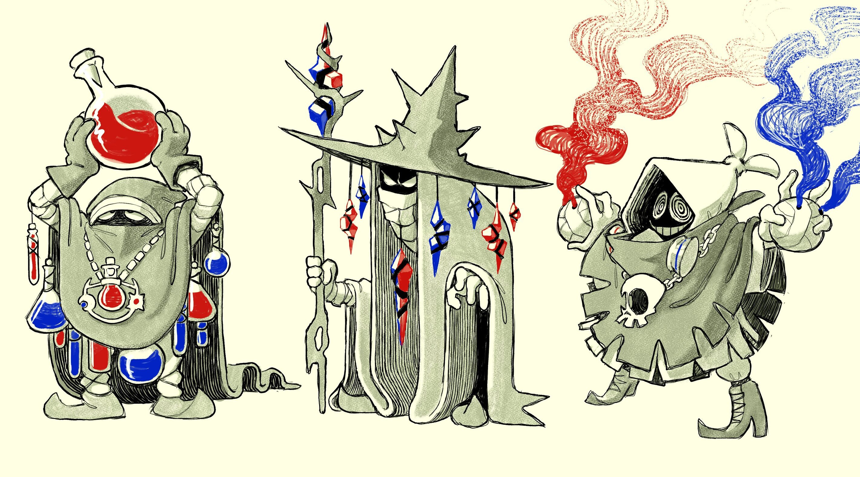So Goggles Guy looked like the more 'normal' one of the two, a design element I tried to accentuate by creating a classic 'primary color' scheme-- I'm not gonna explain that right now, let's just say orange=red, navy=blue, gold=yellow.
