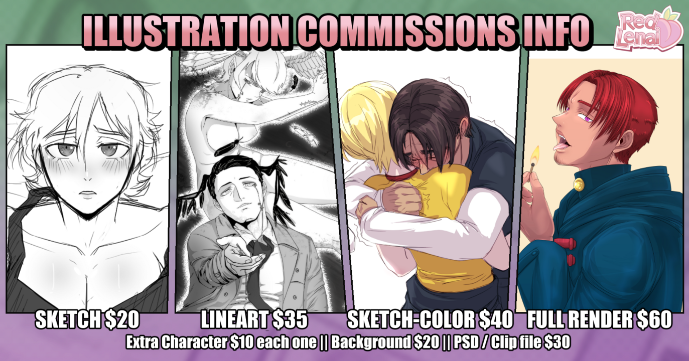 Here is my services pricelist, there is no extra charge for fullbodies or commercial use.