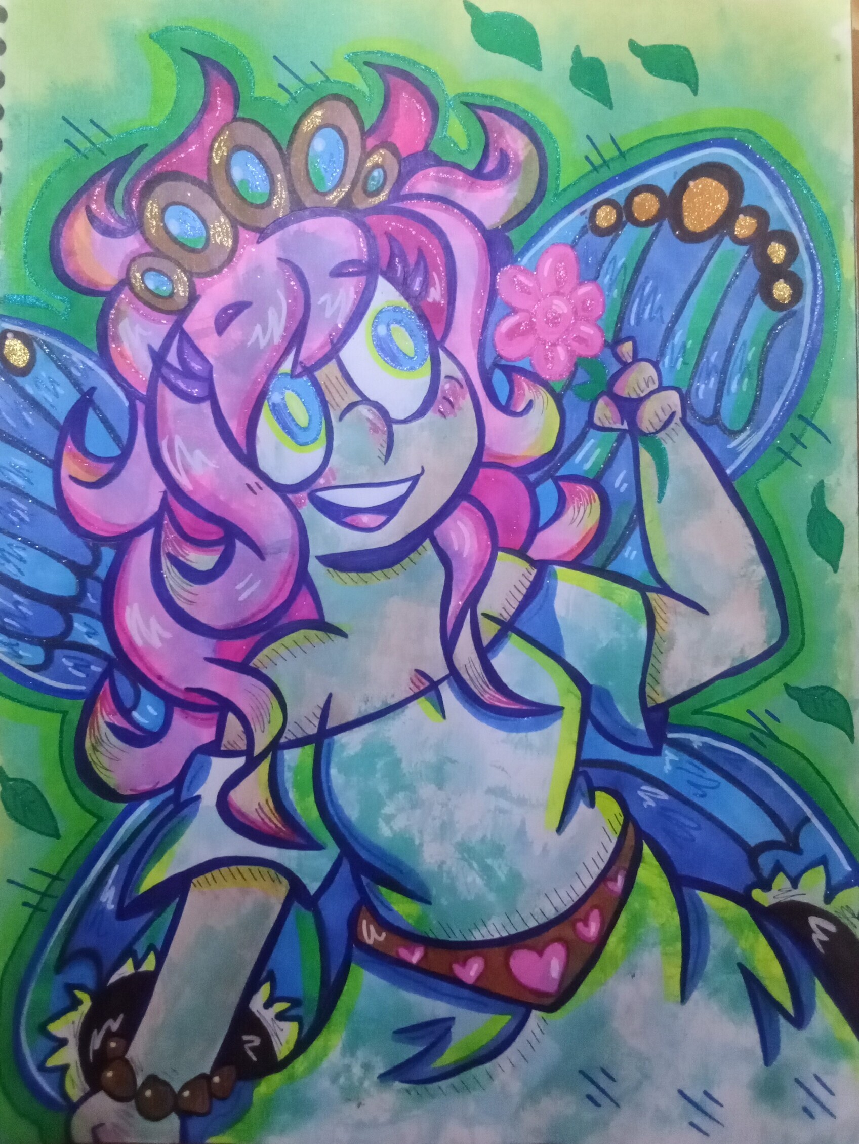 For: @fearthedeer724 I love characters with pink hair. Is this traditional art? The blending on the wings and hair is very nice.