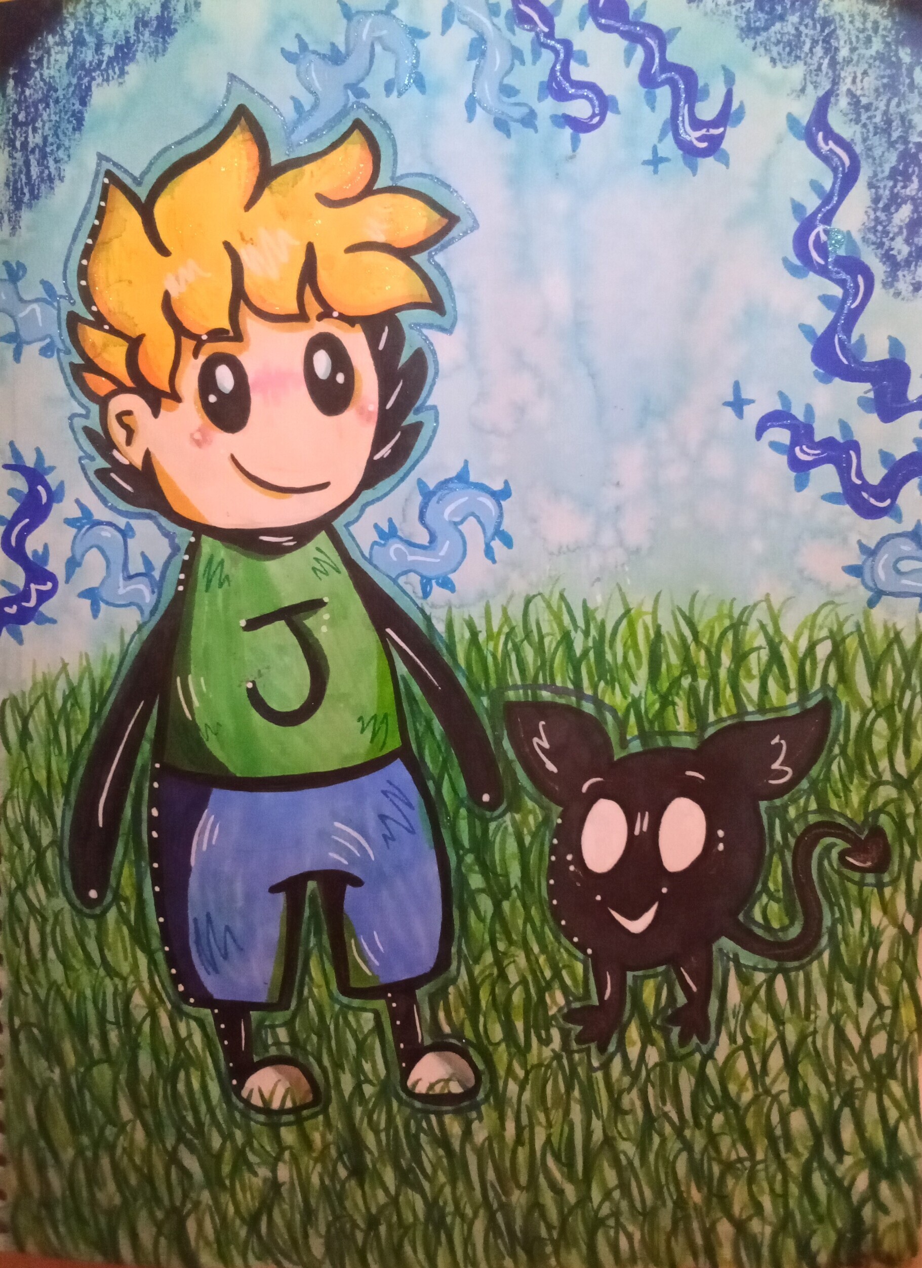 If you like, you can draw my character, Felix. I think heād look super cute in your style
