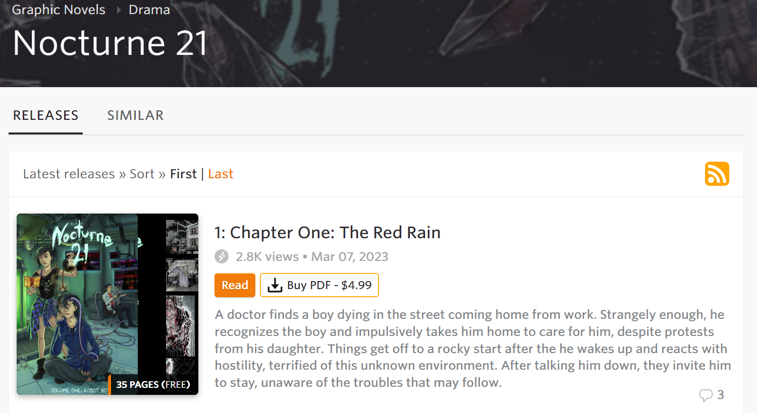 You also don't need to work yourself into the ground doing rapid fire updates. You can pick a schedule that suits you without worrying too much about getting buried by 1 page per day gag comics or other comics with large backlogs being mirrored onto it. The recent update section is split into into different sections very well, stuff from publishers is for the most part kept separate from the indie comics. There's sections for left to right comics, sections for Vertscrollers, Webcomics, Graphic Novels, Manga. Whilst the site has stiff competition to compete on, High site visibility is a good thing and is a strength the site will have going forwards. You can also sell PDFs of your comics If you wish to go down that route. Shoutouts 2 Nocturne 21! ^^.