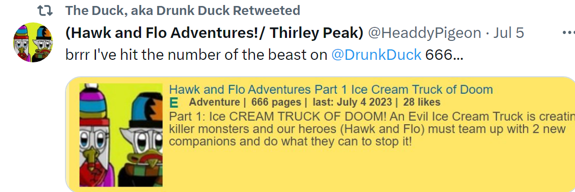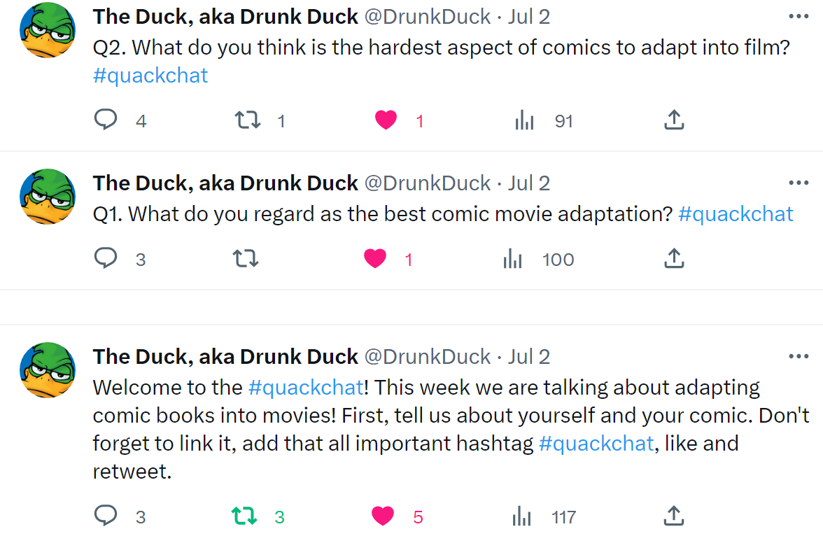 They're just in general fun to do and they give you an excuse to tweet something over the weekends when things get quiet. The Duck is also on Instagram and any comic they feature they will post about the comic and promote it a little bit.