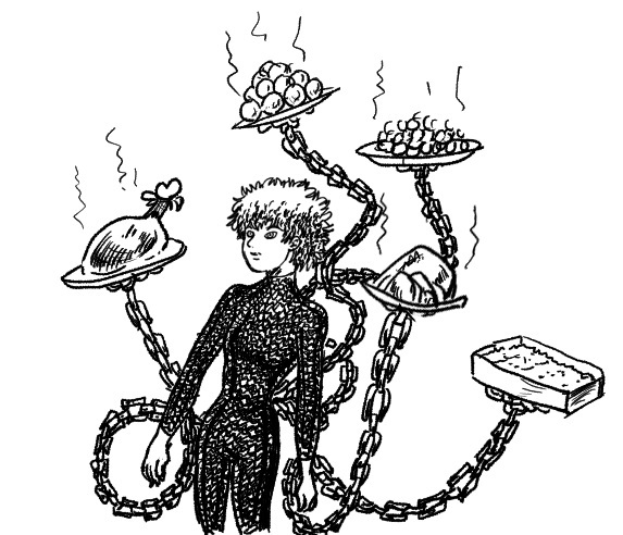Frankie really doesn't wanna be there. Destiny is staring happily at the food.